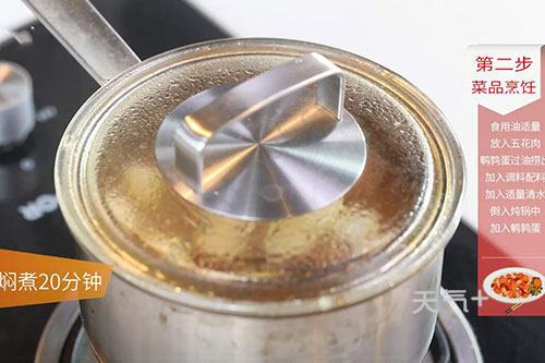 姜切片,蒜切片,大葱切段;2.锅中放鹌鹑蛋加水烧开,煮5分钟捞出剥壳,五花肉煮10分钟捞出切方,油温烧至7成热,放五花肉块煸炒至表面金黄,加鹌鹑蛋,放料酒、生抽、姜蒜片、葱段、八角、等炒匀,加清水、老抽大火煮开,倒入炖锅焖煮25分钟,加鹌鹑蛋焖20分钟即可。