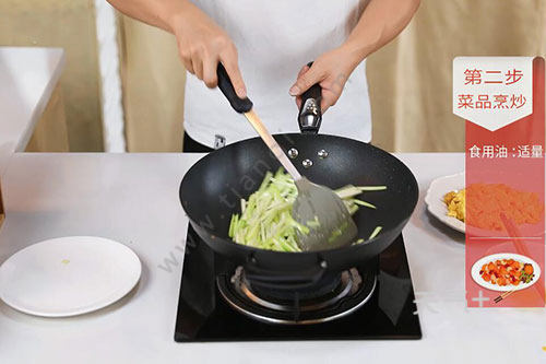 3.锅中放适量油,油温烧至7成热,倒入蛋液翻炒成型后盛出待用;