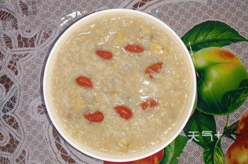 4.粥熟后,加枸杞,关火焖5、6分钟后,盛出即可。