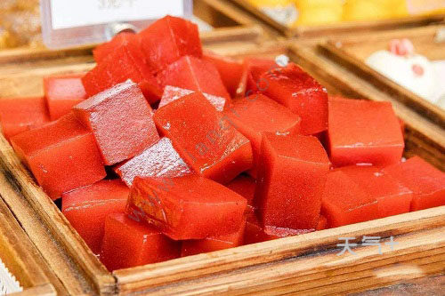 水晶山楂糕是宿迁特有的美食特产,这道美食早在清朝时期就已经非常出名了,经久不衰,凭借着自身的鲜艳色泽,透明如水晶的形状,深受宿迁人们喜爱,到宿迁一定要去买一些山楂糕来一饱口福。