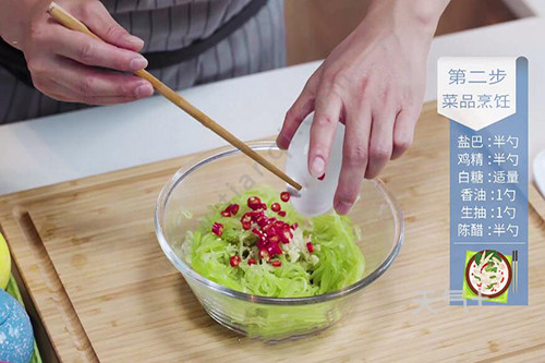 3.莴笋丝放入半勺盐腌10分钟;