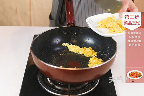3.锅中倒入适量油,油温烧至6成热,倒入蛋液炒到凝结盛出;
