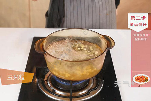 3.锅中放入适量水烧开,放入青豆仁,胡萝卜粒和玉米粒分别焯水备用;
