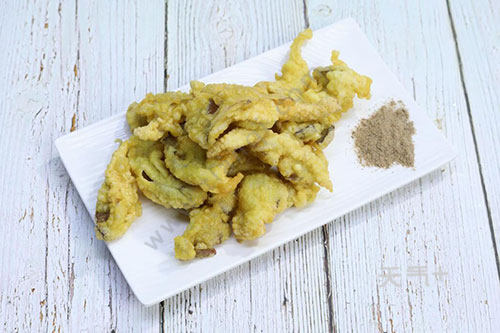 3.锅中放入适量油,油温烧至7成热,将平菇逐个裹上蛋糊放入锅中,中小火炸至金黄,捞出装盘即可。