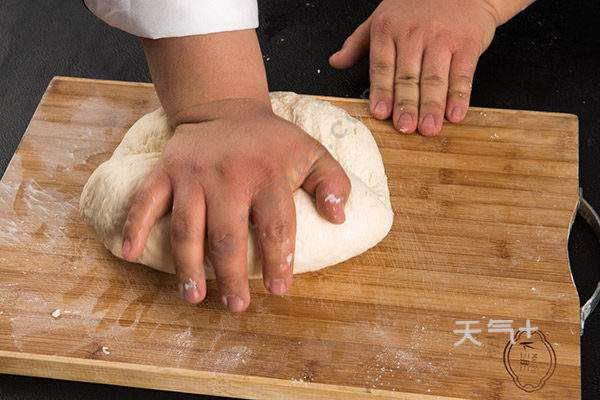 2.面团揉成稍硬的面团,不断的揉面,让面团更筋道。