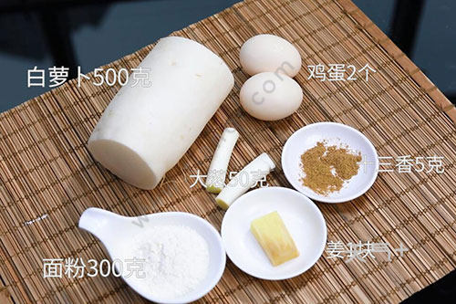 白萝卜500克,面粉300克,鸡蛋2个;
