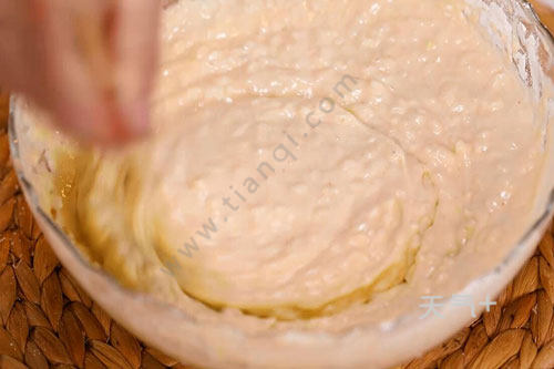 2.将萝卜丝、葱花、姜碎、鸡蛋、面粉、十三香混合均匀,成稠面糊备用;