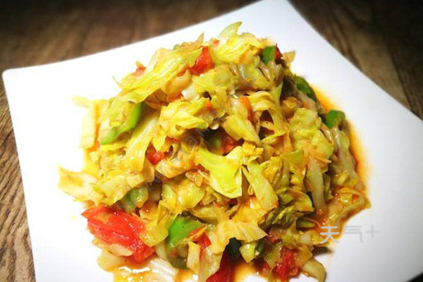 西红柿划十字,放入开水中烫一下,捞出去皮,切成块,圆白菜洗干净,切成块,锅里倒油,油烧热之后,放入西红柿,翻炒出汁,接着放入圆白菜一起炒,加少量盐拌匀,白菜炒至断生后,放入生抽2勺,炒匀,出锅即可。