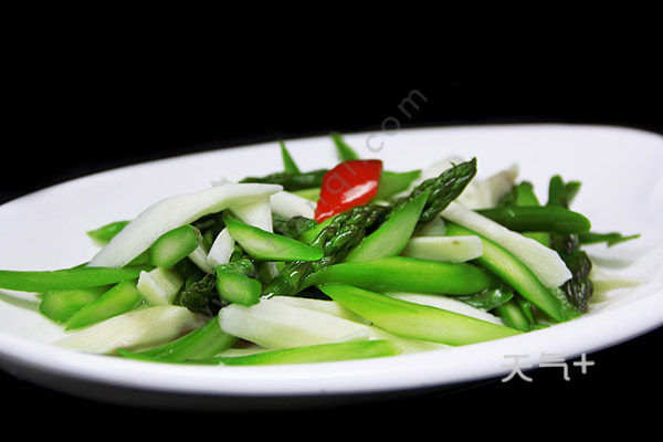 菜肴用猪油来炒味道会更香,炒之前山药和芦笋先焯水。怎么炒芦笋好吃 芦笋炒山药的做法