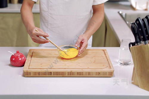 5.打匀过筛,去掉未打散的蛋液泡沫;