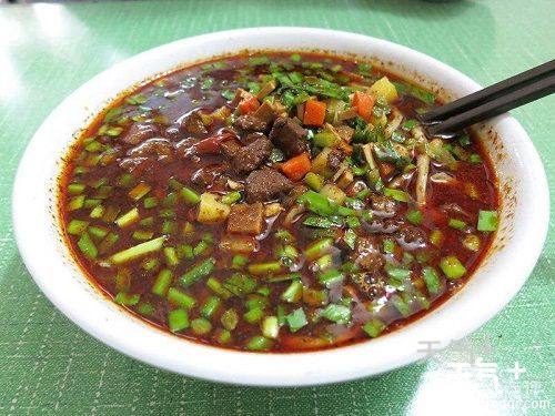 岐山臊子面:好喜欢酸酸的啊。我一般都会再倒点醋进去,面条本事滑滑的,吸溜吸溜不一会儿一碗就能吃完。酸酸的汤水也好喝,汤里有切成指甲盖大小的干子,有独特的香味,很是美味。