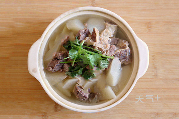 6.肉烂后,倒入炒锅中,加入萝卜和盐煮至萝卜熟透,加鸡精拌匀,出锅。