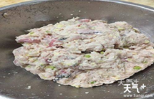3、白肉剁碎,把白肉100克,生姜70克,葱白(葱白带点绿)70克,味精20克,白糖22克,细盐18克一起加入鱼肉里,用手抓揉或摔打,直到感觉很粘很有韧性了,再加淀粉200克,再继续揉至看不到粉粒。