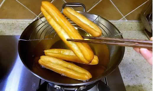 3、用炒锅炸完油条后,锅内的植物油依然清亮见底,健康看得见;