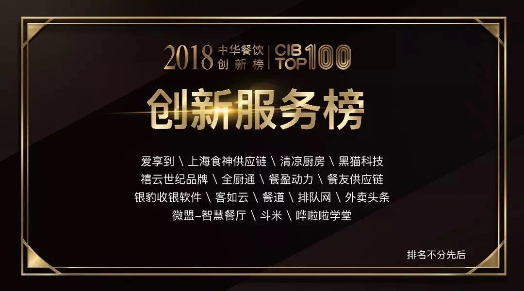 月27日,第11届餐饮界创新创业高峰论坛,暨第二届中华餐饮创新榜TOP100颁奖典礼在广州隆重召开。历经近四个月的大众投票和专家评选,活动揭晓了中华餐饮创新榜TOP100榜单(CIB TOP100)。作为餐饮SaaS领域的优秀代表,餐道获选”2018第二届中华餐饮创新榜TOP100”创新服务榜。