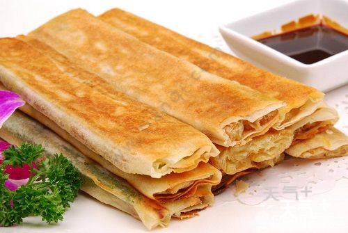 “葱包桧儿”是杭州特有风味的传统小吃。传说望仙桥畔王二油煎饼店炸“油炸桧”出了名,一时众起仿效,油炸桧店林立杭城。王二有时炸多了,一下子卖不出去,冷了又软又韧,味道不佳,更无人买。他对秦桧夫妇的心头之恨,还愤愤难平,就将冷油炸桧在热锅一烤,把烤熟的油炸桧同葱段卷入拌着甜面酱的春饼里,再用铁板压烤,烤到表皮呈金黄色,油炸桧“吱吱”发叫,王二方才解恨,他拿起来一吃,觉葱香可口,便取名叫“葱包桧儿”,一直流传至今。