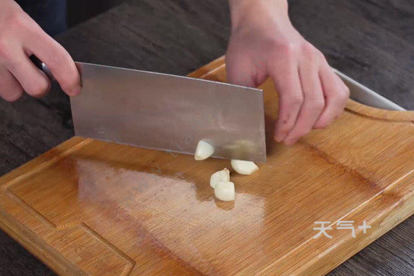 5、大蒜对半切开;