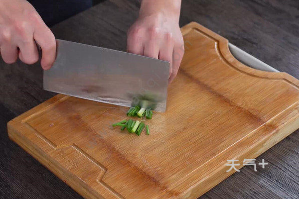 6、小葱切长段;