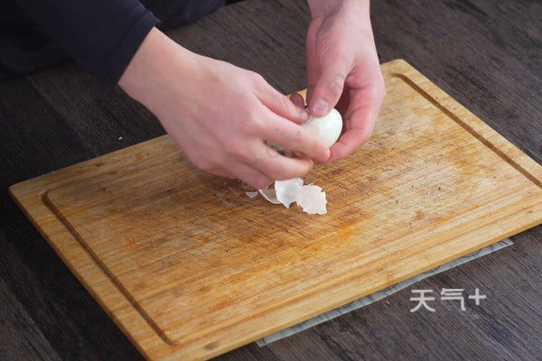1、鸡蛋下锅,水沸后煮七八分钟,捞出过冷水去壳;