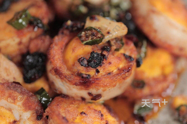 5、底油爆香豆豉、蒜片,下辣椒圈翻炒片刻,倒回鸡蛋混合,给少许生抽调味,鸡蛋的做法 鸡蛋怎么炒好吃出锅前加少许白糖提鲜即可。