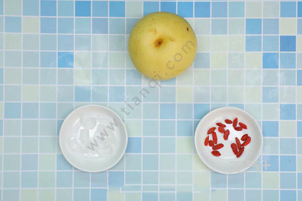 1、首先准备好冰糖、雪梨、枸杞等食材;