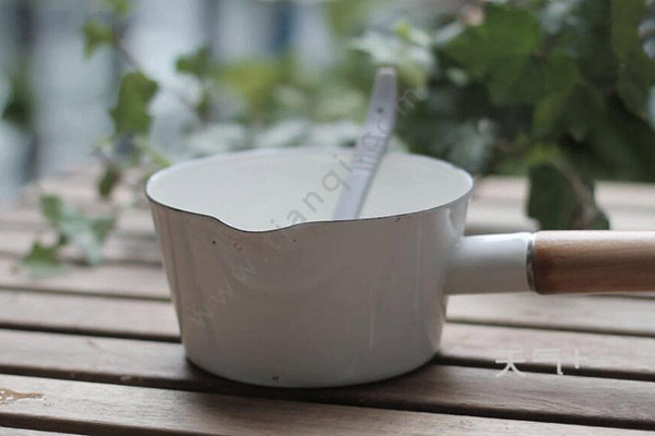 2、倒入200g牛奶,加入冰糖,加热到刚沸腾时离火放置3分钟;