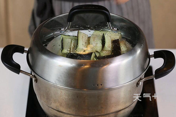 1、蒜蓉蒸茄子的家常做法 如何蒸茄子好吃茄子倒入清水洗净切条;