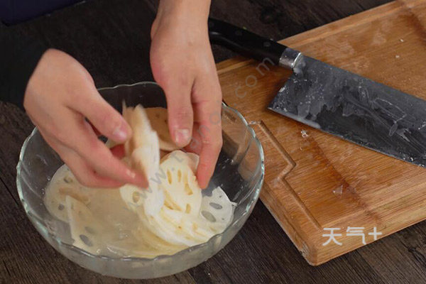 莲藕里面有淀粉,最好用清水浸泡20分钟以上,这样藕片炒出来更加的清脆。
