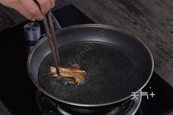 4、平底锅油温6成热,香煎鲅鱼的做法 家常香煎鲅鱼怎么做放入大葱炸至微焦后捞出;