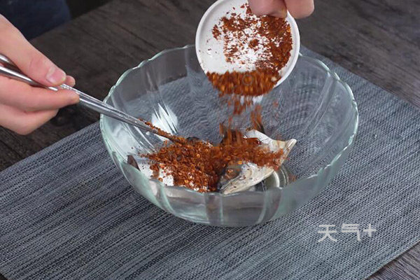 鲅鱼1条、大葱1段、姜1块、辣椒酱1勺、料酒1勺、蚝油1勺、辣椒面适量