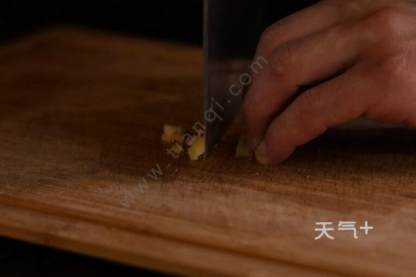 2、姜1块切片,1块拍碎剁成姜蓉;