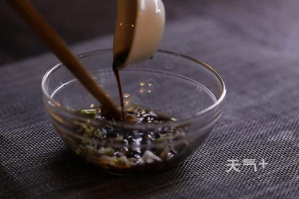 5、姜、葱蓉放入小碟中,放入2勺花生油、盐半勺拌匀制成蘸料;