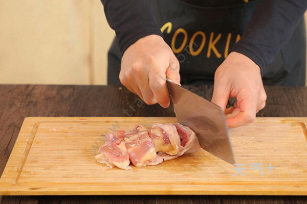 2、鸡剁成小块;
