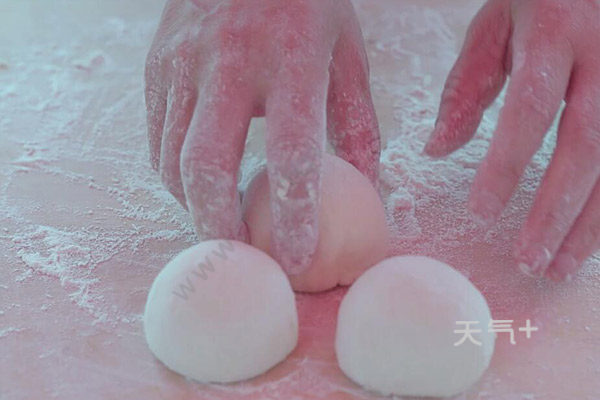 3、取出面团,将面团反复揉搓揪成大小均匀的小面团;