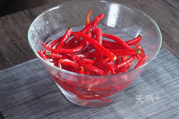 2、红辣椒去蒂洗干净;