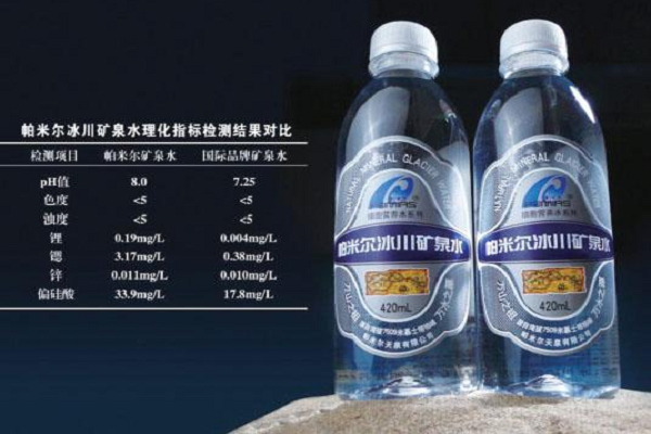 帕米尔冰川矿泉水是来自新疆喀什地区的特产产品,也是中国具有地理标志性的产品,在行业的发展中也是比较稀有,珍贵的健康的优质水资源产品。帕米尔冰川矿泉水其水分子只有普通水的一半,水质比较细腻和绵柔,所以更加容易被人们身体所吸收,也是国际上面公认的健康水的标准水资源,也被科学家命名为生命之水。帕米尔冰川矿泉水的产品发展也因为产品的自由特色和产品的稀有质感等等,受到了人们喜欢,现在的帕米尔冰川矿泉水的产品发展也是步步高升。