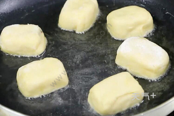 宝斗糕的家常做法 宝斗糕怎么做好吃先将低筋面粉倒入碗中,再倒入玉米面粉和玉米油,打入1个鸡蛋,搅拌均匀。然后揉成面团,取适量面团放在掌心上,裹入适量的豆沙馅,揉成丸子状,整成方形。锅中倒入少许油,放入做好的面饼,中小火煎至底部微黄后翻面,煎至两面都微黄,捞出装盘即可。