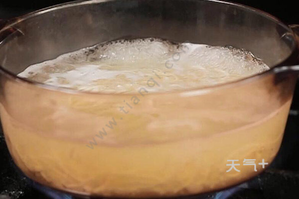1、锅中加入清水,大火烧开,然后把面条放下去,开始煮面;