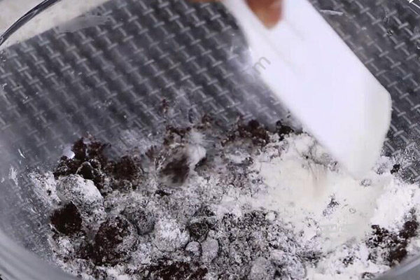 2、红糖里放入面粉拌匀;