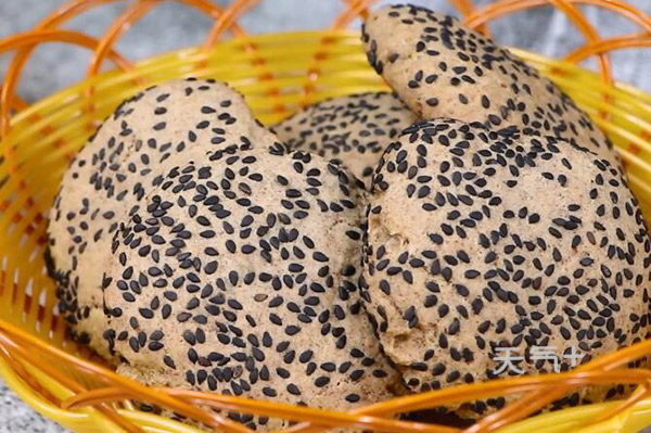 全麦粉100克、中筋面粉100克、黄油80克 、糖粉70克、小苏打2克、黑芝麻适量