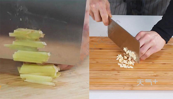 1、把姜切丝,蒜切末;