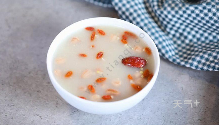 小米80克、红枣10克、枸杞5克、花生米50克、冰糖5克。