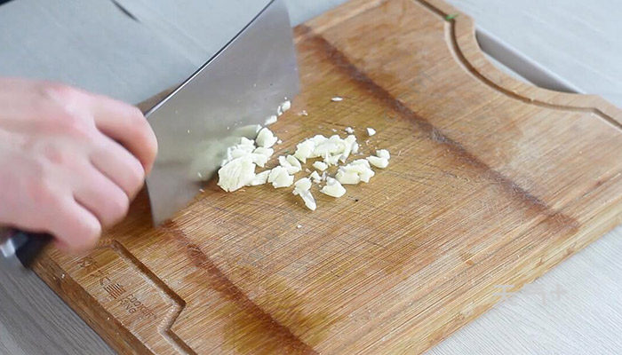 油麦菜400克、大蒜2瓣、鸡精半勺、盐半勺。