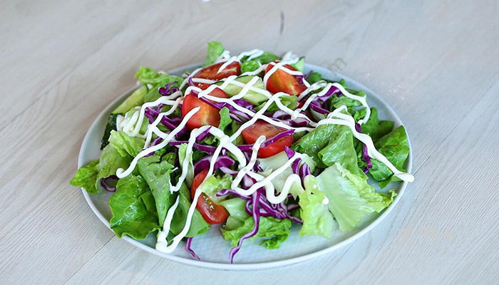 4、最后挤上沙拉酱即可。蔬菜沙拉的简单做法 瘦身蔬菜沙拉怎么做
