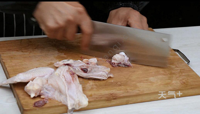 2、鸡肉剁成小块;