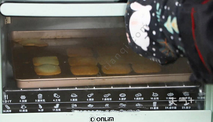 5、饼干放入提前预热好的烤箱中层,用180度烤8到10分钟;