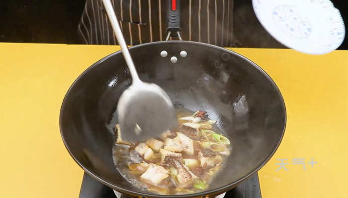 5、用小火烧透,用大火收汁,放入味精和香油,出锅前拌匀即可。