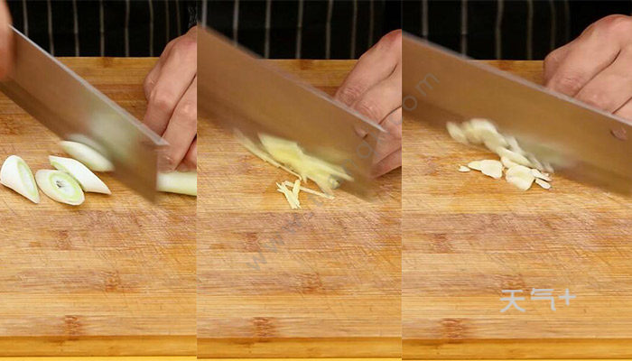1、葱切段,姜切丝,蒜切片;