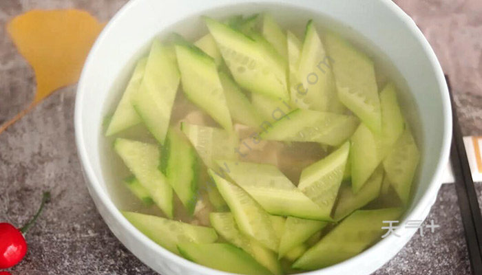 里脊肉洗净切片,然后放清水中浸泡出血水。黄瓜切成菱形片。锅内加清水,加热至微沸时下入里脊片,煮至八成熟后捞出,放入黄瓜片。将浸泡里脊片的血水,倒入锅内汤中,小火加热至微沸,撇净浮沫。最后,加盐、鸡精,胡椒粉、料酒,调好口味后倒入汤碗即可。