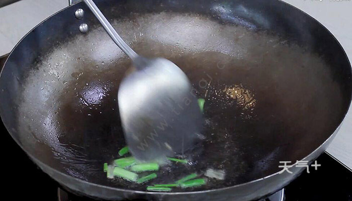 3、锅里倒适量油,烧热之后放入葱白,煸出葱油香味;